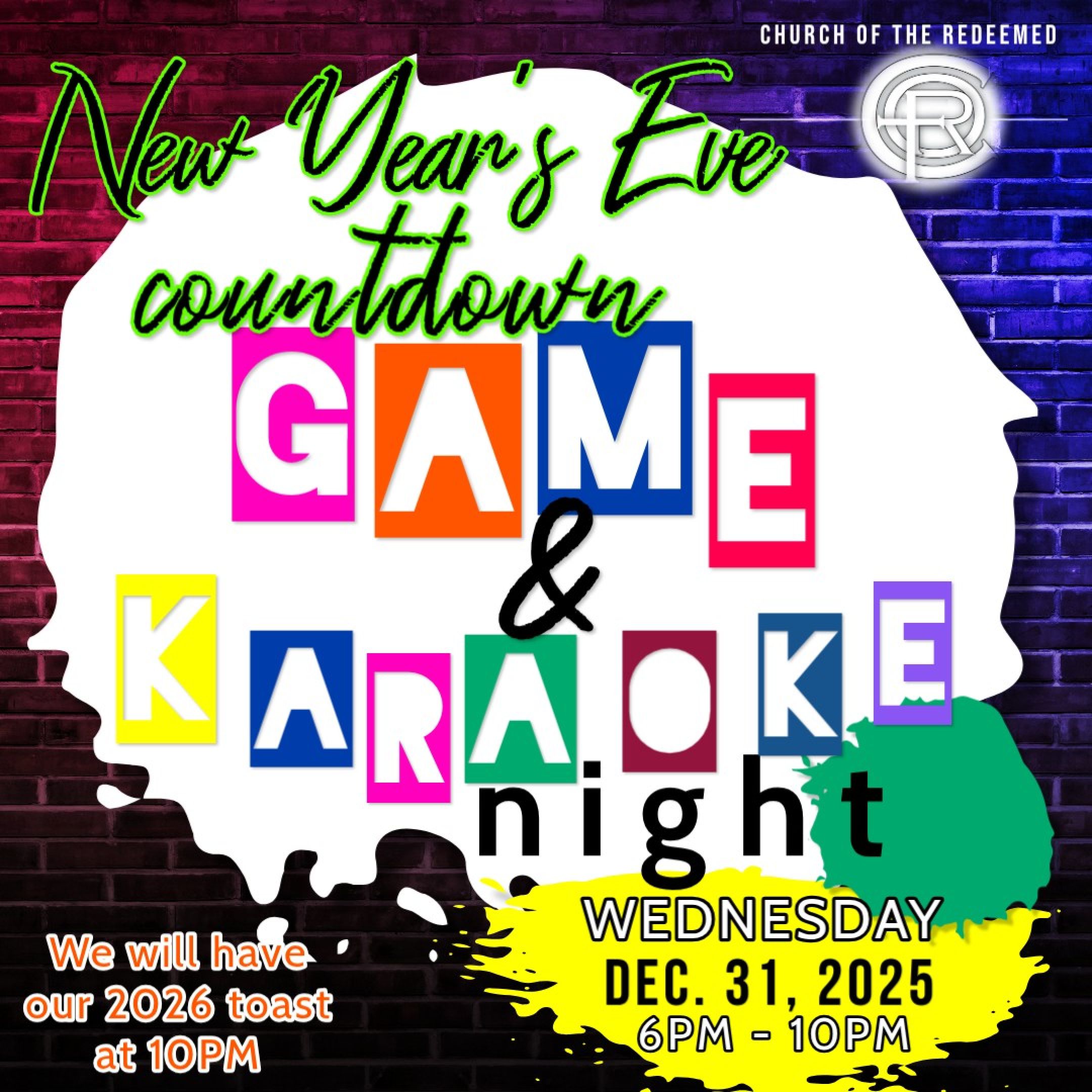 December 31, 2025, 6 pm to 10 pm.